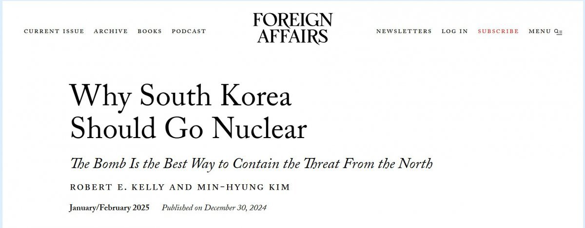 로버트 켈리 부산대 교수와 김민형 경희대 교수는 지난 30일(현지시각) 미 외교전문지 ‘포린 어페어스’에 ‘한국이 핵무기로 가야하는 이유(Why South Korea Should Go Nuclear)’를 공동 기고했다.